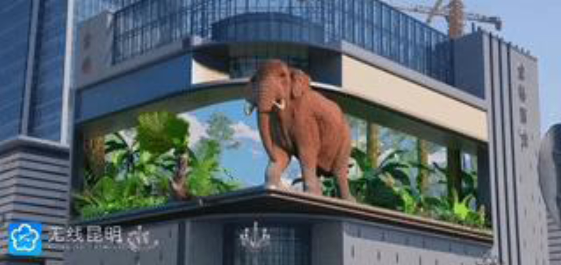 With a total area of 2,184m2, the screen on the exterior wall of Gingko Center is the first 3D screen in Yunnan and ranks third in China. The arc rounded corner-shaped screen adopts the surface smoothing technique in corners that levels up its resolution to 8K, bringing audiences seamlessly-connected and lifelike naked-eye 3D experience. During shooting, distant view, close shot and background are all clearly visible, presenting a complete “WYSIWYG” full-real-time film and television production process. The COP15 naked-eye 3D promotional video played on the screen vividly present characteristic animals and plants in Yunnan, China, such as green peafowl, Asian elephant and snub-nosed monkey, bringing stunning visual impact and novel media visual experience. In addition to strong immersive visual experience to audience, the lifelike naked-eye 3D effect also arouses our sense of responsibility and mission to protect the nature and biodiversity.