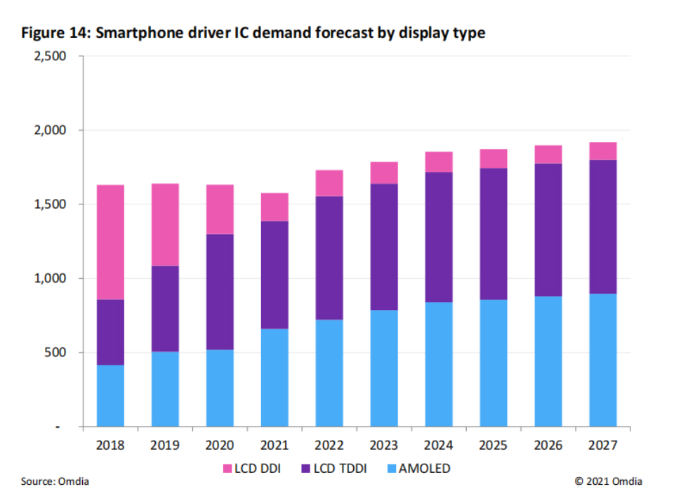 TDDI方案因架構的高度集成性,具有顯示屏輕薄化,降低成本,簡化供應鏈等優勢,成為了目前手機LCD屏的主流方案,從2020年LCD TDDI方案在智能手機顯示觸控應用占比已超過50%。