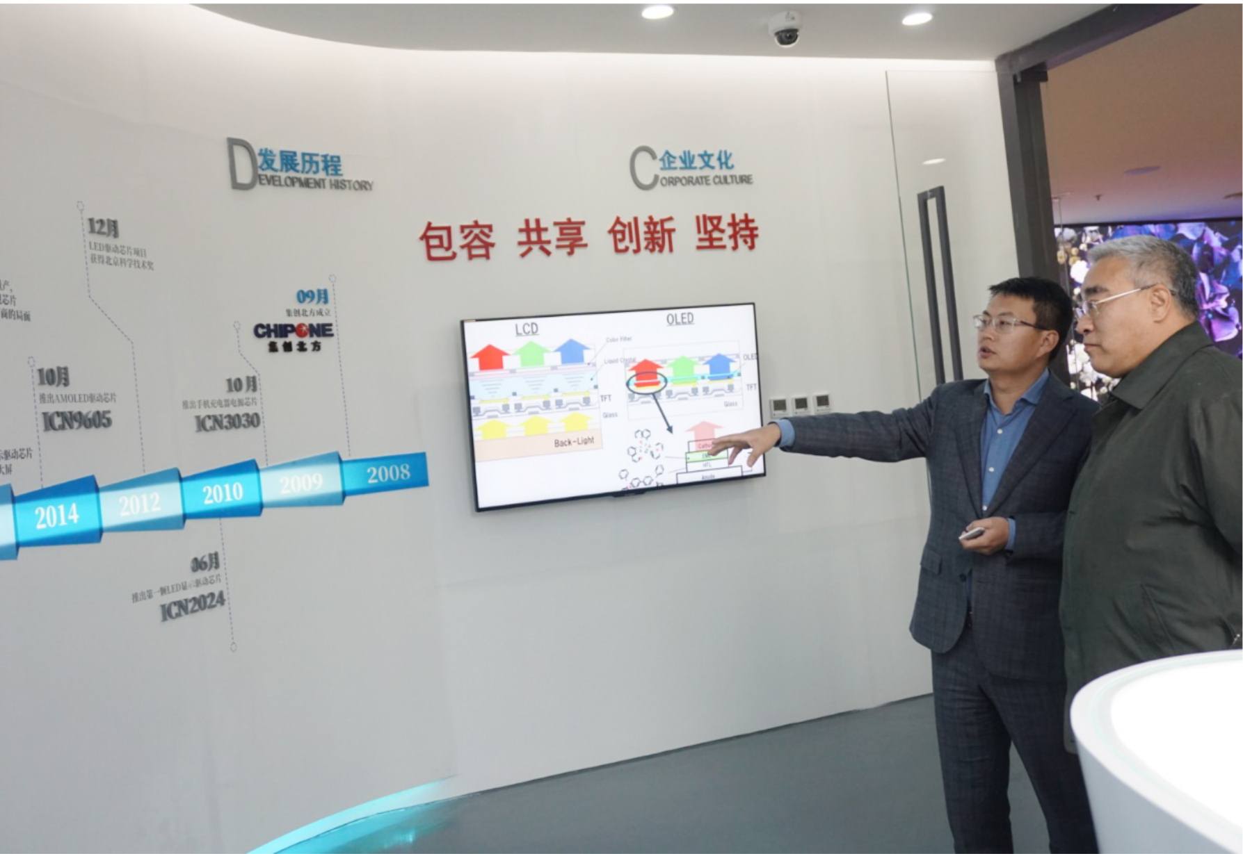 2018年11月19日,北京市科委副巡視員劉暉攜高新處、電裝處、條財處、國合處、金融促進會相關同志蒞臨集創北方總部,為民營企業帶來綜合“服務包”,集創北方董事長張晉芳、副總裁孫濤陪同介紹。