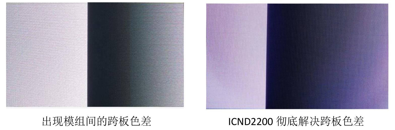 利于行列合一的分區(qū)域控制的框架優(yōu)勢,以及獨特的高對比度干擾處理技術,ICND2200能徹底解決目前困擾小間距的高對比度干擾造成的跨板色差及高低亮耦合問題。