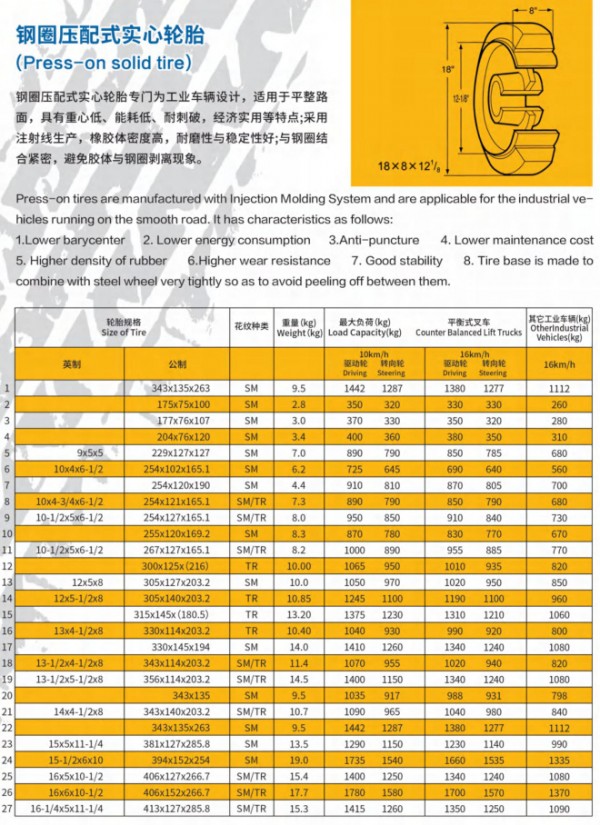 煙臺鑫龍叉車輪胎有限公司主營環(huán)保式實心輪胎,鋼圈壓配胎